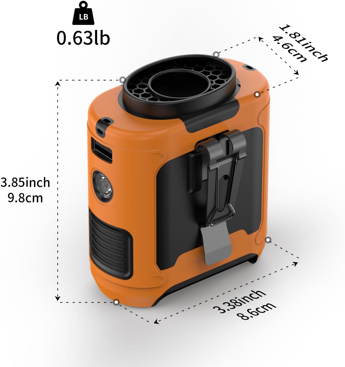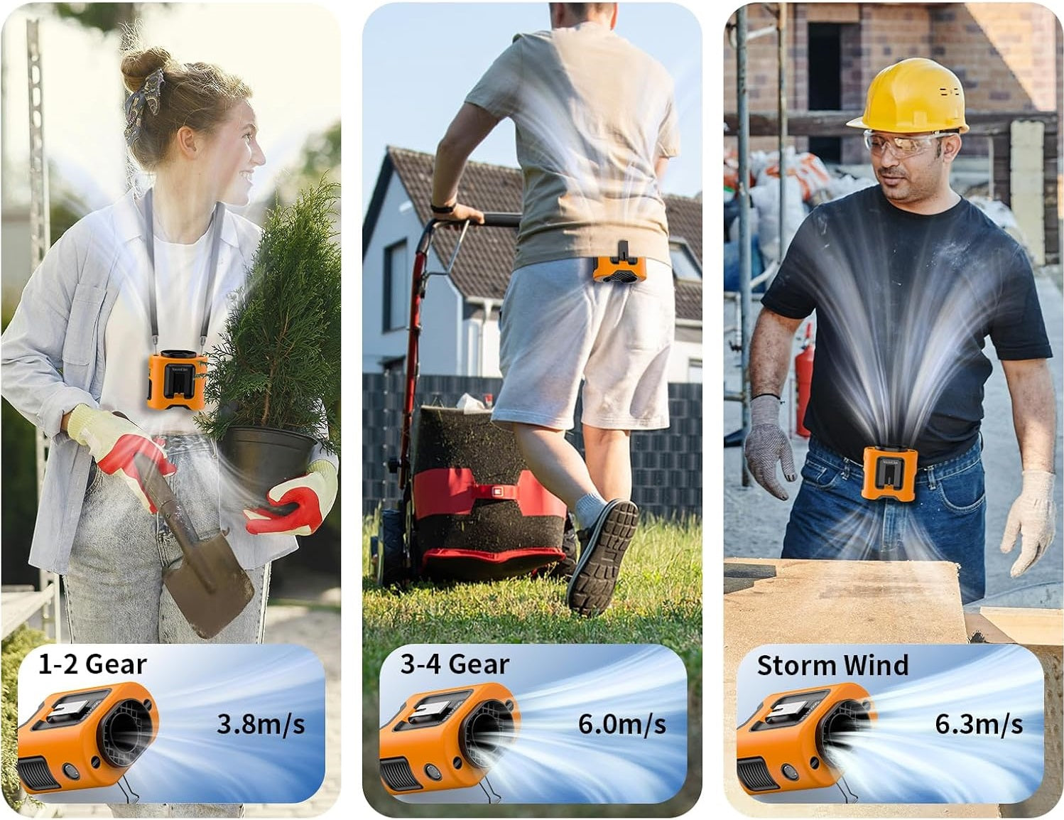 This Portable waist fan features a protective silicone cover that makes it non-slip, shock-resistant, and drop-proof, perfect for outdoor use.