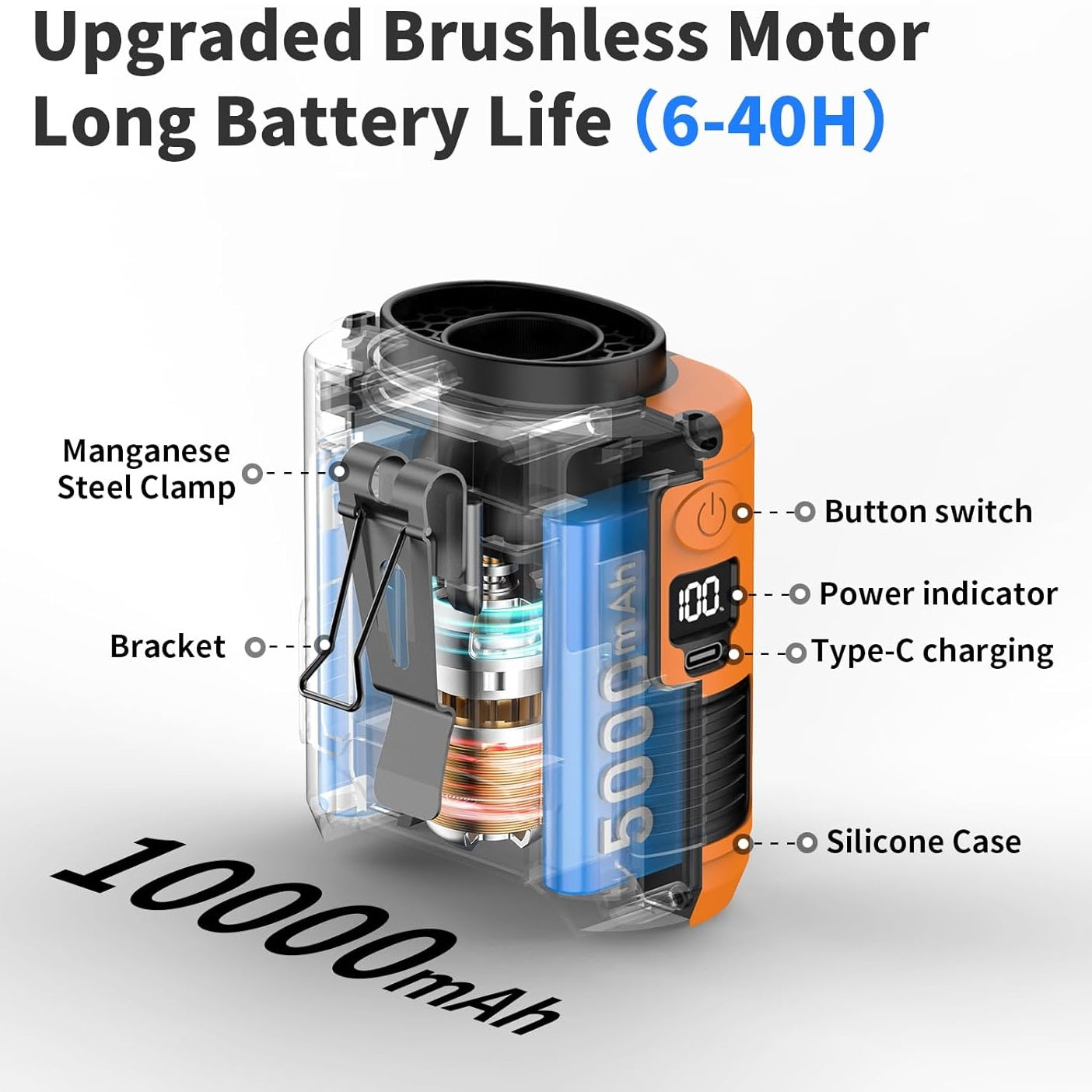 With its 5V-3A Type-C input and 5V-2A USB output, it ensures fast, convenient charging and provides long-lasting cooling wherever you go.